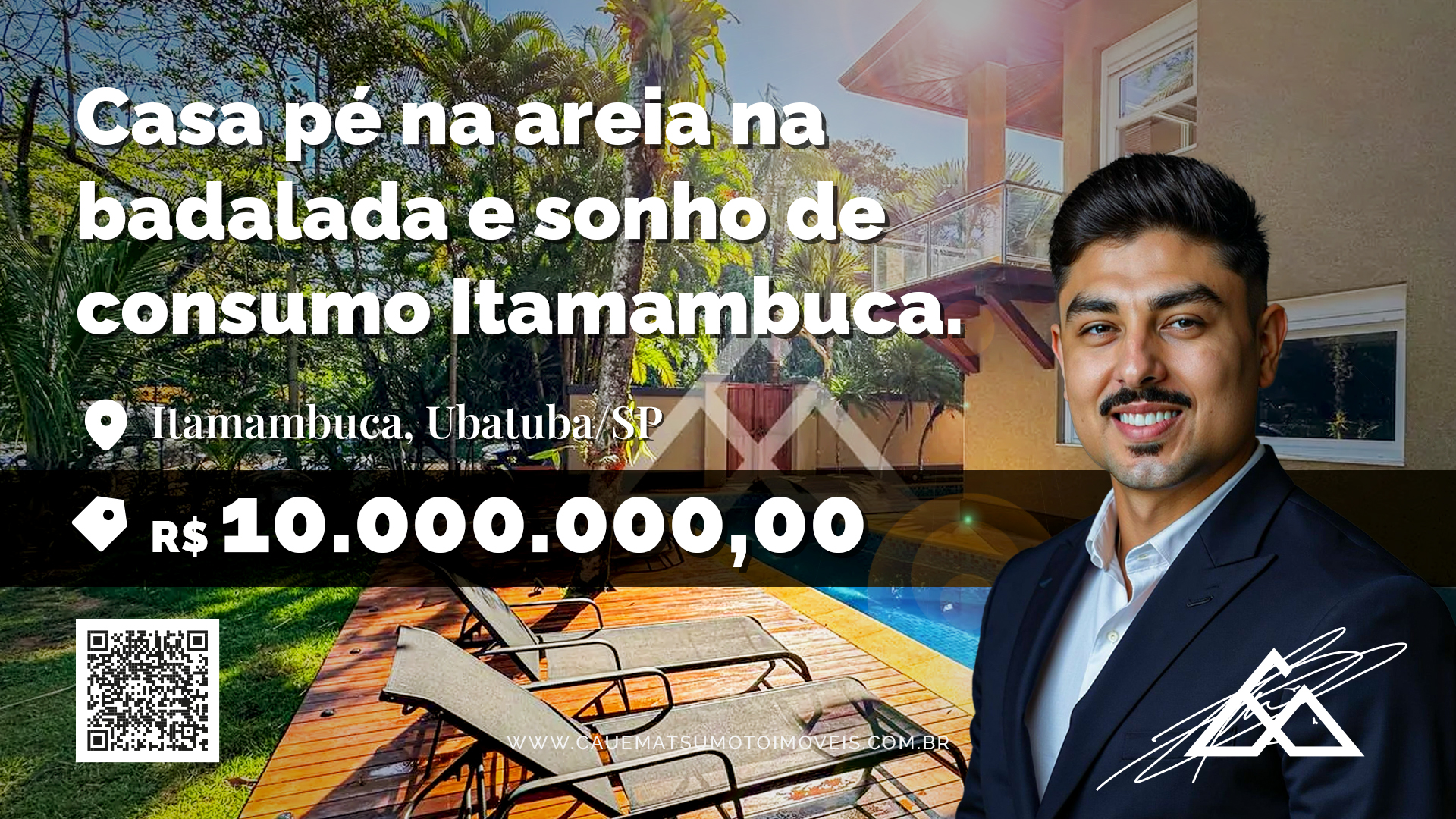 - Espaço de jardim gramado e acesso direto à paradisíaca praia de Itamambuca.