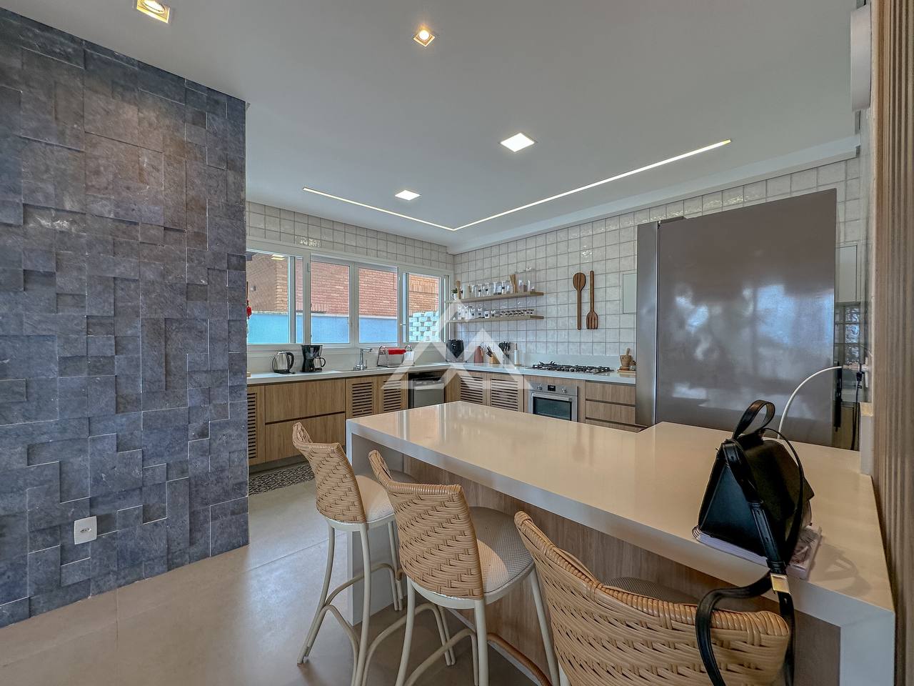 Belo projeto pensado nos mínimos detalhes, com acabamentos de alto padrão, ambientes integrados e muita iluminação natural.