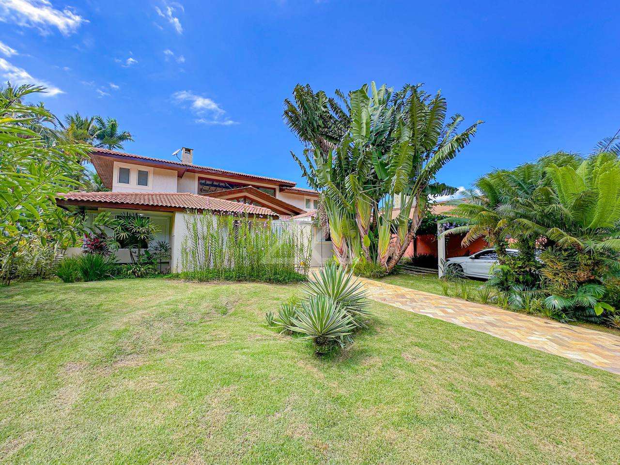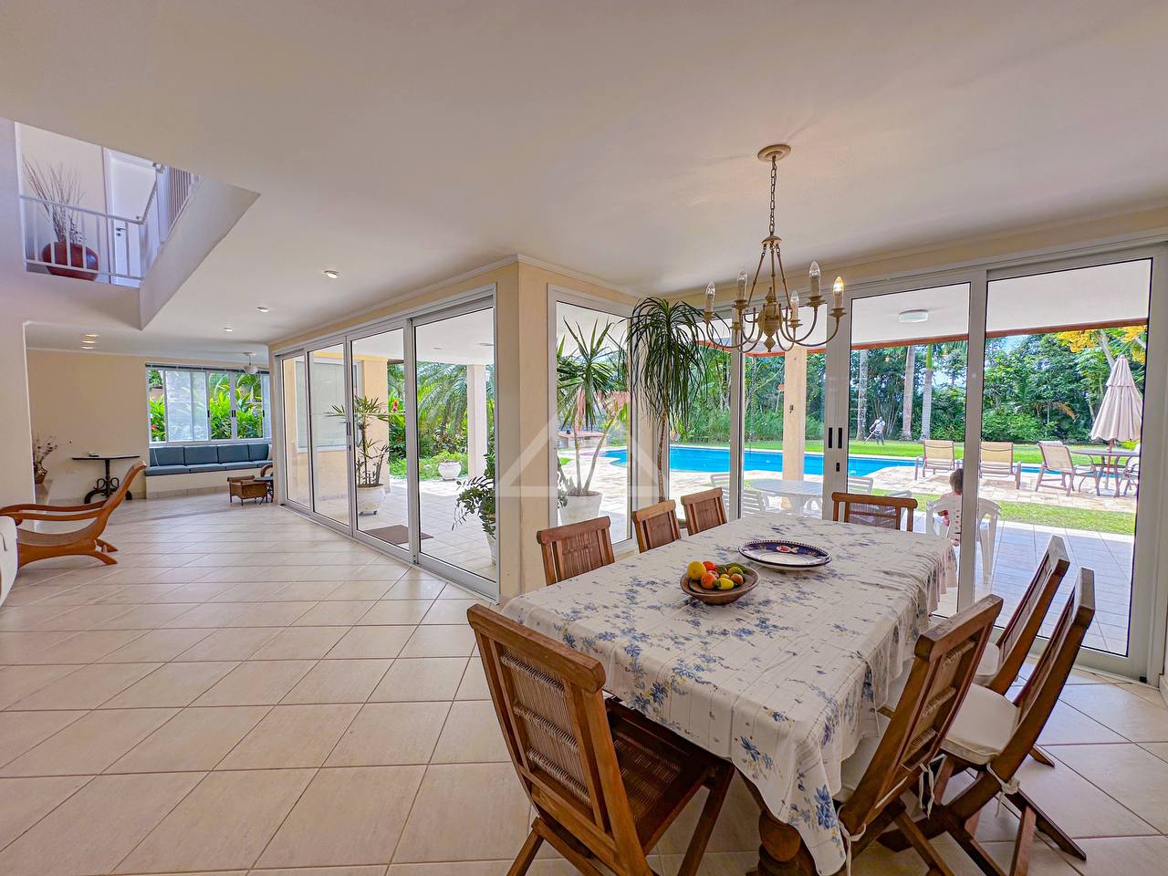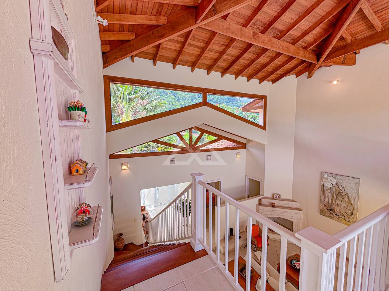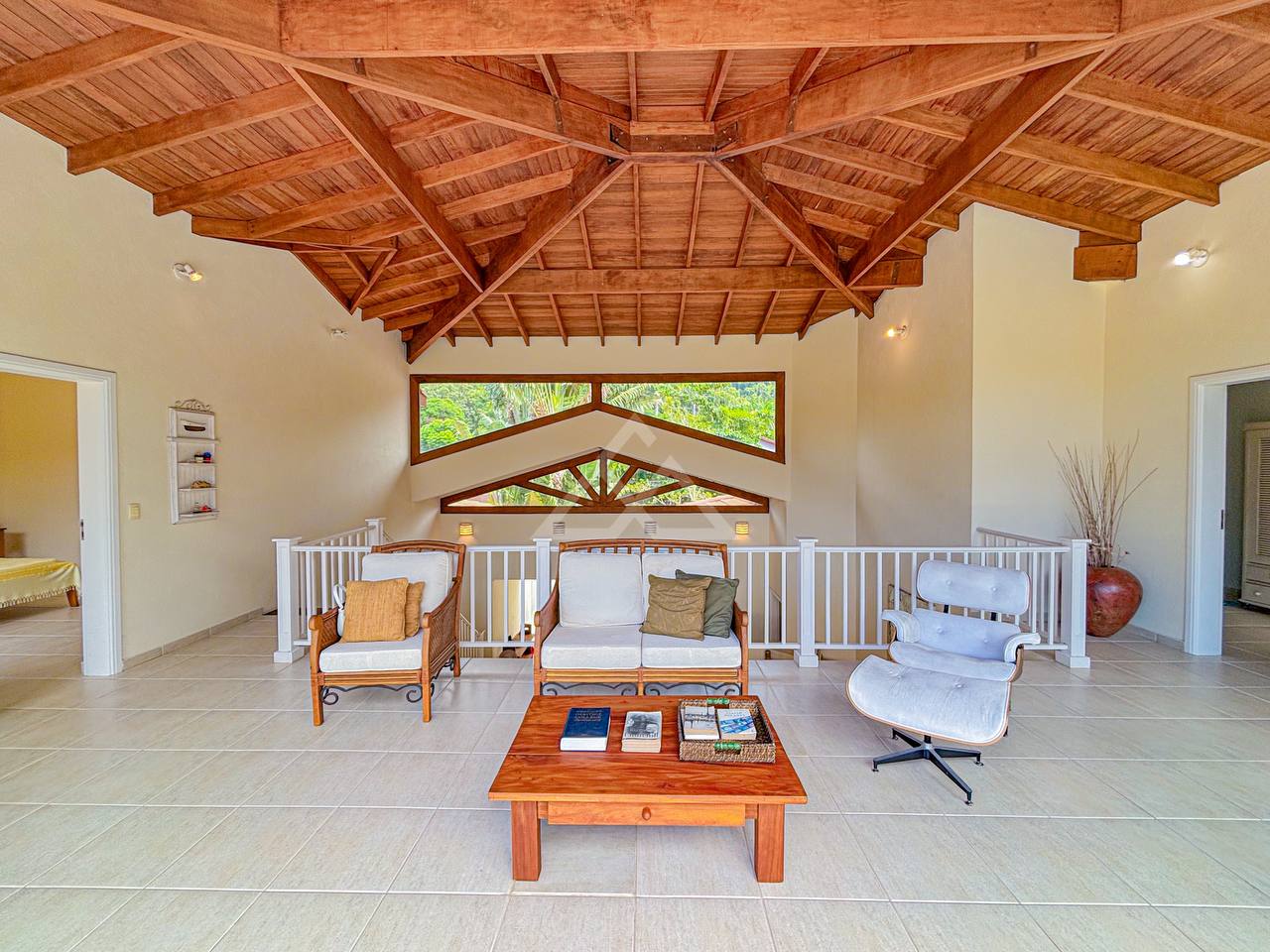 Casa com 4 suítes, sendo 2 térreas e 2 no pavimento superior, pavimento esse que conta com uma bela area de contemplação, e relaxamento entre as suítes.
