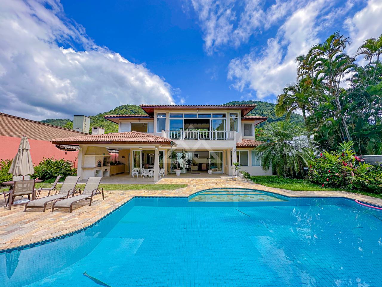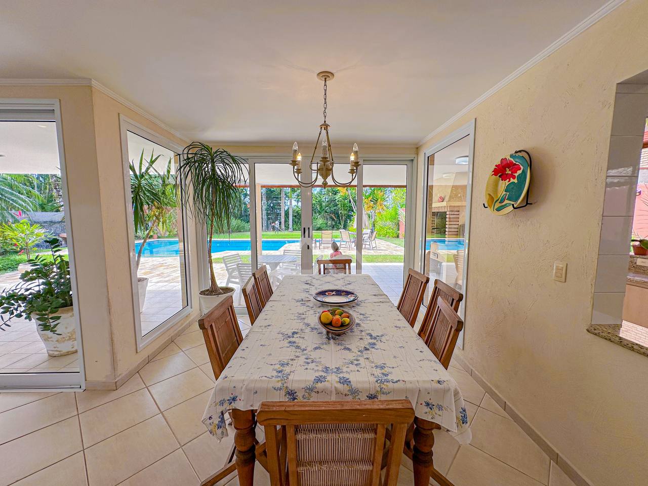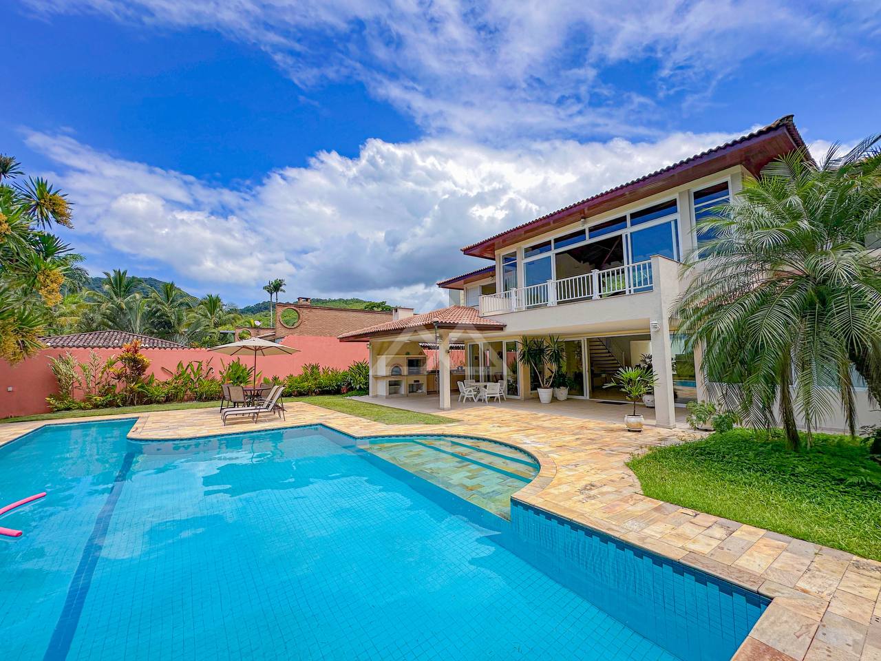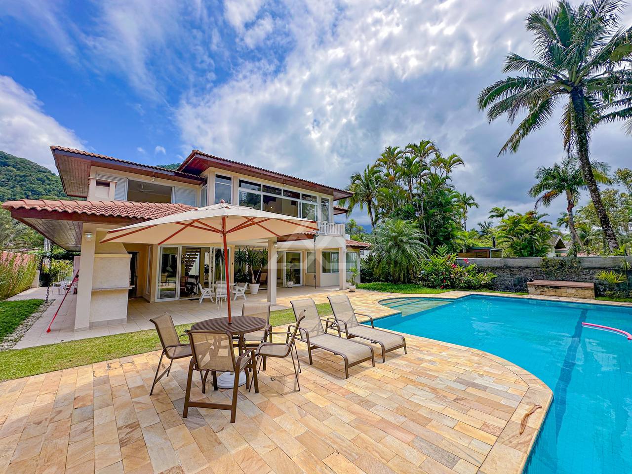 Casa com 4 suítes, sendo 2 térreas e 2 no pavimento superior, pavimento esse que conta com uma bela area de contemplação, e relaxamento entre as suítes.