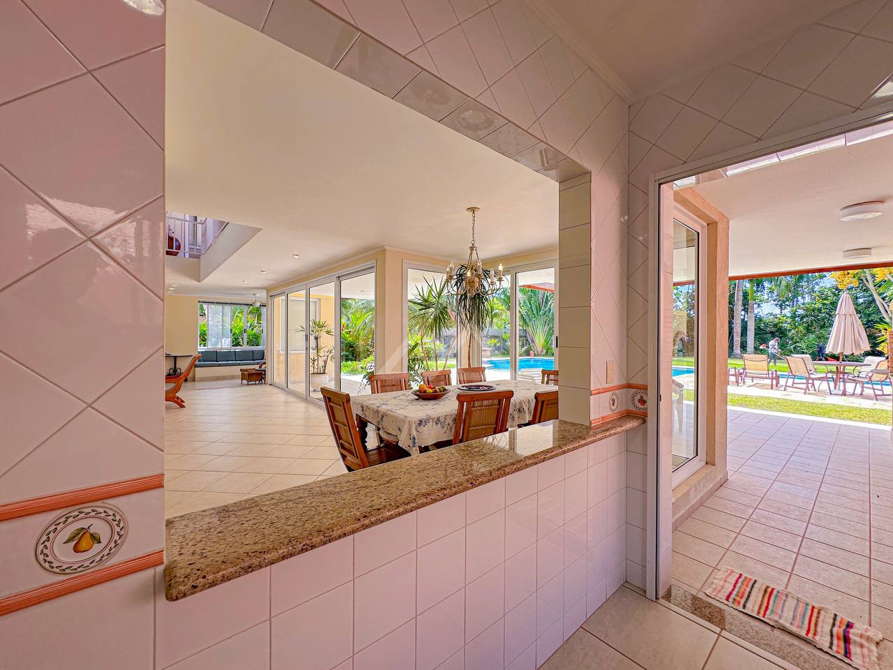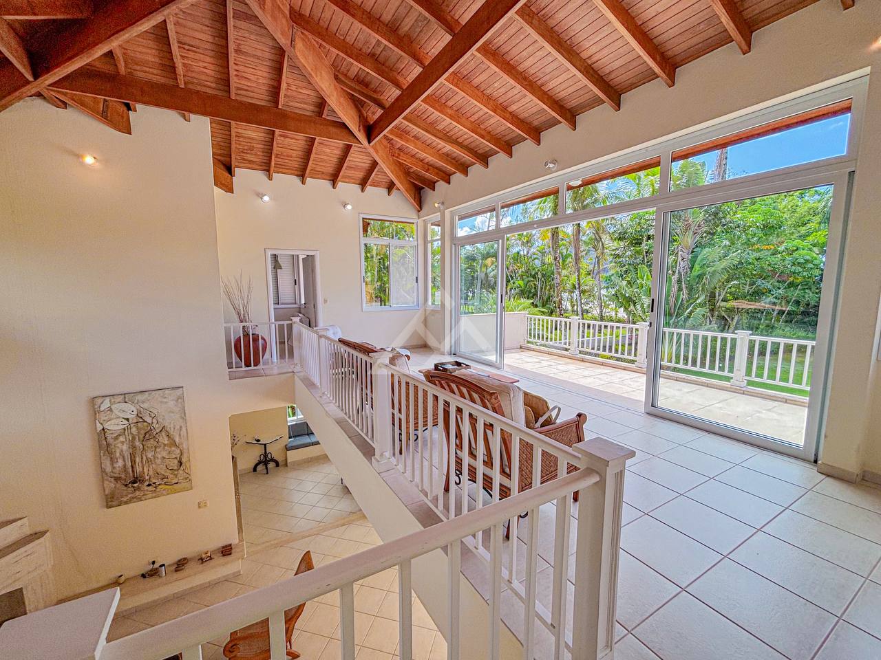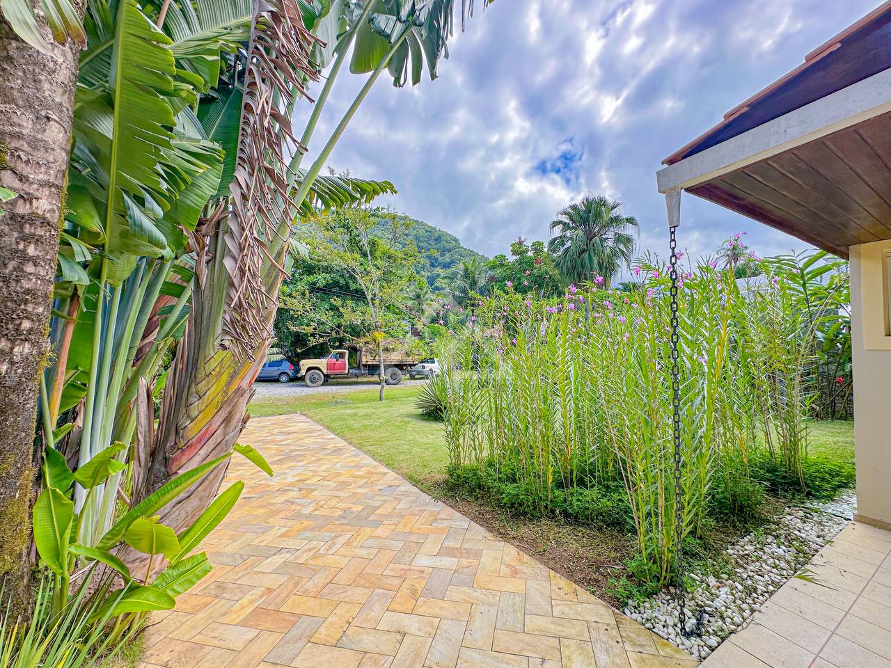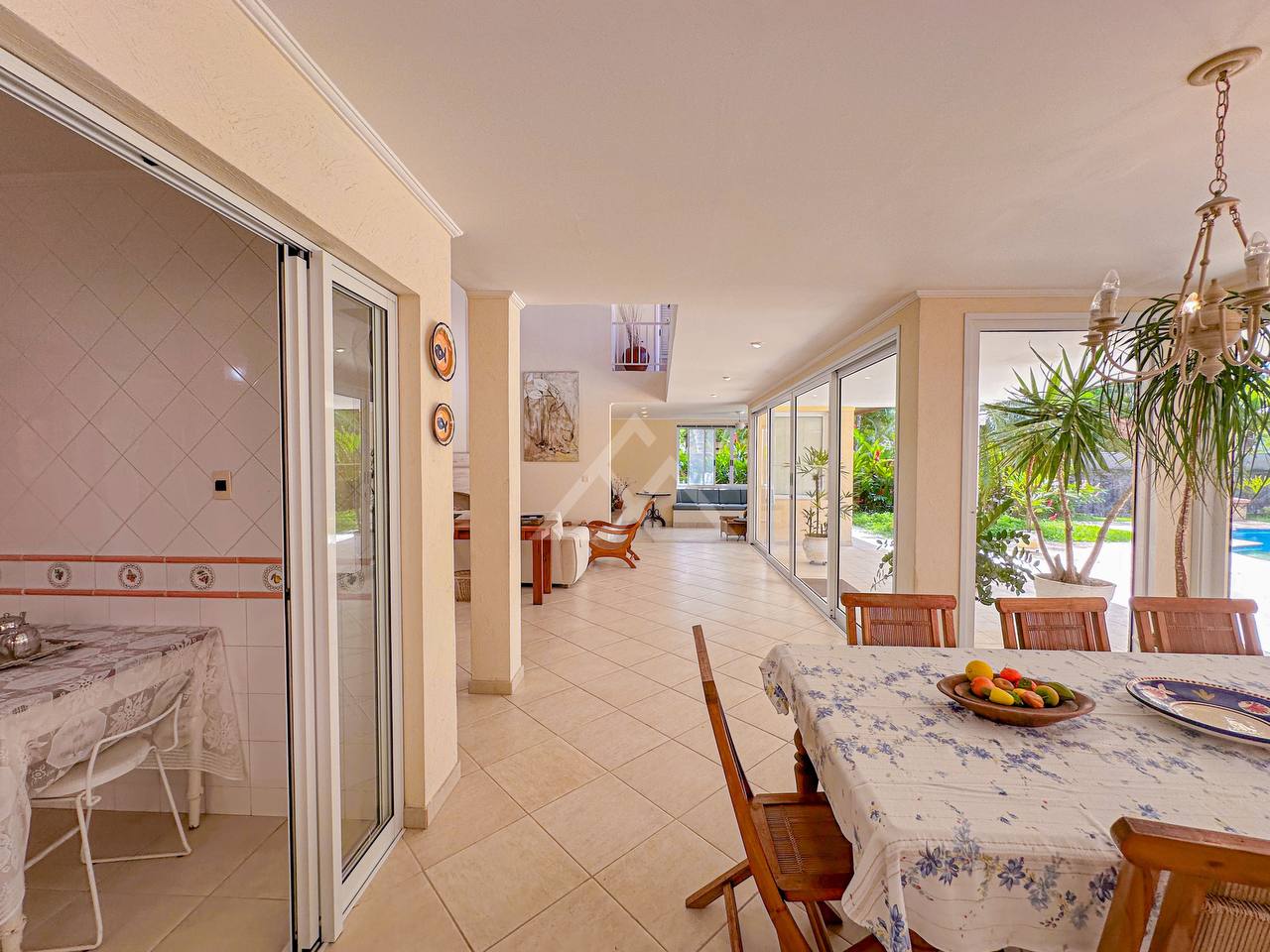 Casa com 4 suítes, sendo 2 térreas e 2 no pavimento superior, pavimento esse que conta com uma bela area de contemplação, e relaxamento entre as suítes.