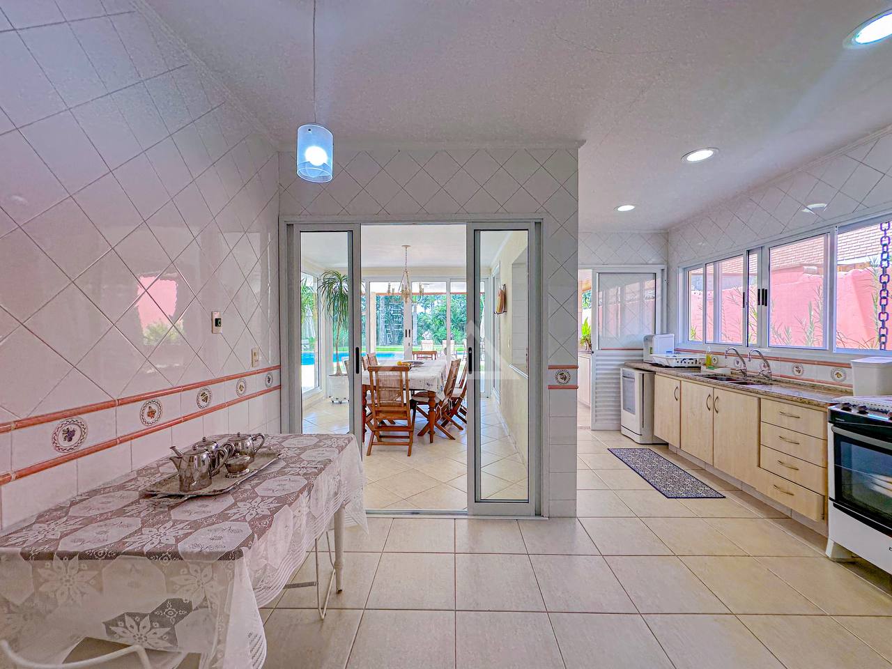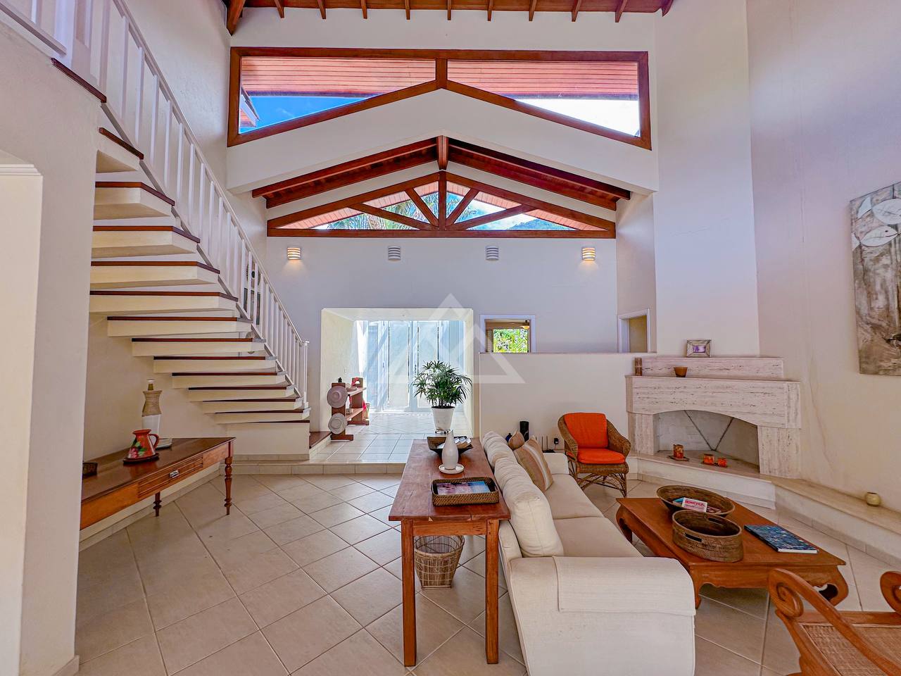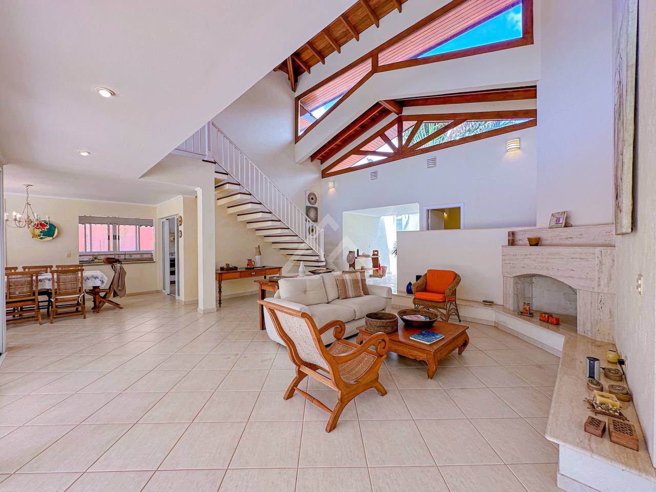 Pé direito alto, proporcionando muita entrada de luz e ventilação natural, garantindo uma casa super arejada.